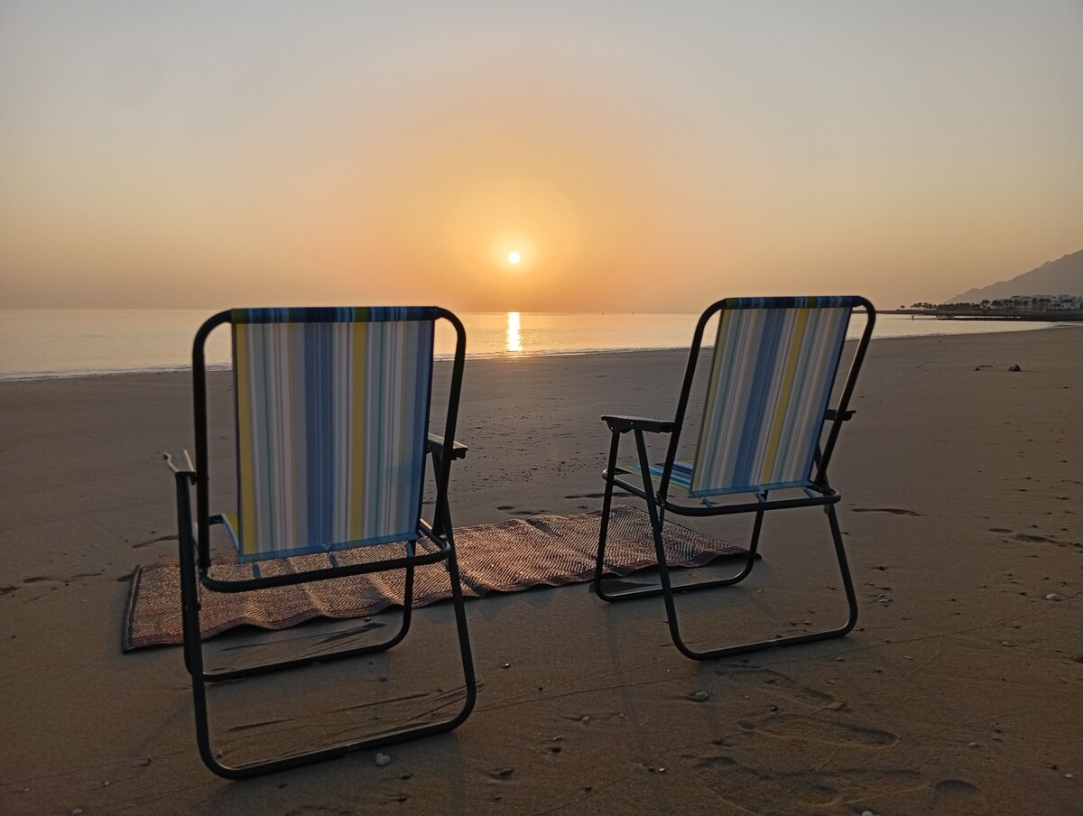 Brand-new apartment in Muscat’s most prestigious seaside neighborhood. Enjoy a peaceful stay just steps from the beach, surrounded by cafés, restaurants, and luxury hotels—at a fraction of the cost. ✔ it is next to Waterfront ✔️Walking distance to the Royal Opera House, W Hotel, and Mandarin Oriental ✔ Beachfront promenade with popular cafés ✔️Walking distance to Jawharati Shatti ✔ Quiet, safe area close to Muscat’s main attractions Perfect for travelers who want location, comfort, and value