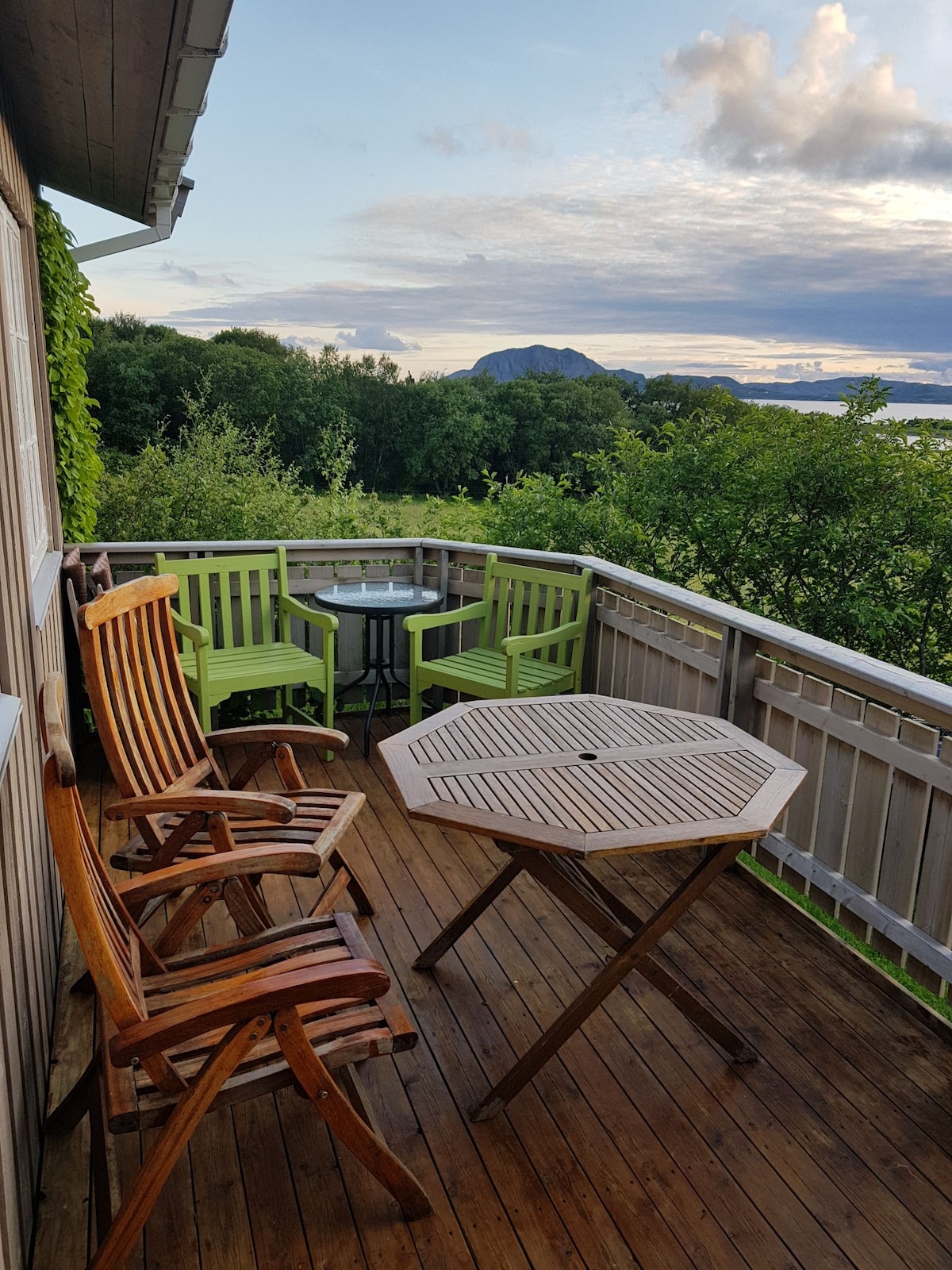 Árasán úrnua lánfheistithe i dteach cois uisce ar shuíomh príobháideach agus radhairc iontacha ar Torghatten sa deisceart agus ar Vega san iarthar. Ón mbalcóin is féidir leat taitneamh a bhaint as luíonna gréine áille, féachaint ar an Hurtigruten ag seoladh thart nó cupán caife a ól i dtimpeallacht chiúin. Dóibh siúd ar mhaith leo snámh a thógáil, tá dréimirí snámha ar an gcé snámha díreach thíos. Ar thráthnóna geimhridh glana dorcha, d'fhéadfá a bheith ádhúil agus na soilse tuaisceartacha a fheiceáil ag damhsa ar fud na spéire.