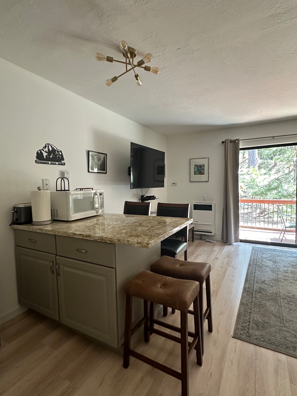 Árasán nua-athchóirithe ag Yosemite West Condos atá suite taobh istigh de Pháirc Náisiúnta Yosemite ina bhfuil go leor saoráidí agus nasc láidir Wi-Fi trí Starlink agus tá sé foirfe le haghaidh fanacht gearr nó fada le linn do chuairt ar Yosemite Mórgachtach. Níl sé ach 15 nóiméad go dtí limistéar sciála Badger Pass agus radharc an tolláin agus turas gairid sa charr go dtí Gleann Yosemite, Óstán Ahwahnee agus nithe is díol spéise eile sa pháirc. Áit chiúin le teacht chuici tar éis taitneamh a bhaint as do lá i nGleann Yosemite chun tráthnóna suaimhneach a bheith agat i do spás féin!