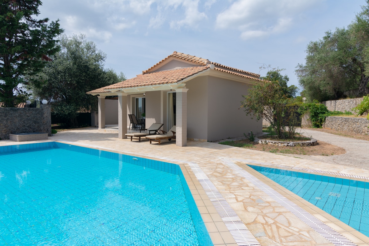 Fáilte chuig Villa Georgina! Villa dhá sheomra leapa atá neadaithe i measc fhásra méith Nisaki, ag breathnú amach ar an bhfarraige Iónach. Feistithe go hiomlán d'fhonn saoire speisialta a thairiscint do suas le 4 dhuine. Tá dhá sheomra leapa ann, leaba dhúbailte amháin agus cúpla amháin, ag dul go dtí an príomh - ardán fairsing le radharc iontach ar an bhfarraige oscailte, áit ar féidir leat taitneamh a bhaint as béilí a ullmhaítear i gcistin lánfheistithe an tí, nó ag an BBQ. Cuireann Villa Georgina linn snámha príobháideach éigríoch ar fáil le haghaidh tréimhsí scíthe íon.