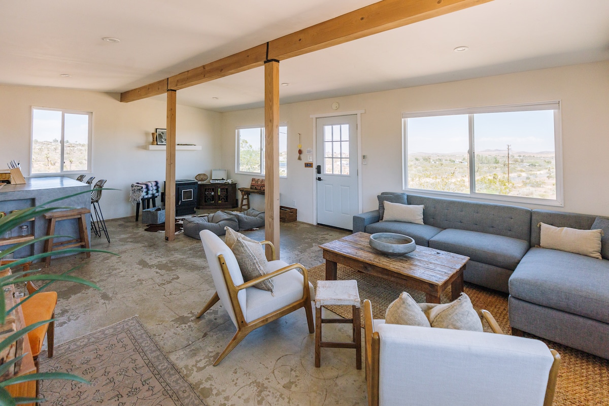 DĂ©an iniĂșchadh ar Pipe's Perch, cĂĄbĂĄn nua - athchĂłirithe ar 5 acra phrĂobhĂĄideacha in Pipes Canyon, dĂreach 20 nĂłimĂ©ad Ăł PhĂĄirc NĂĄisiĂșnta Joshua Tree agus 15 nĂłimĂ©ad Ăł Pappy & Harriet's. Inrochtana go hĂ©asca, tĂĄ radhairc iontacha ann de churaigh gharbha agus de bheanna. Taobh istigh, bain sult as sĂł nua - aimseartha le daingneĂĄin phrĂĄis, cuntair grianchloiche, agus fearais nua. FrĂĄmaĂonn fuinneoga mĂłra ĂĄilleacht an fhĂĄsaigh. Scaoil isteach i leaba California King le AC fuar oighir le haghaidh tearmainn fhoirfe.