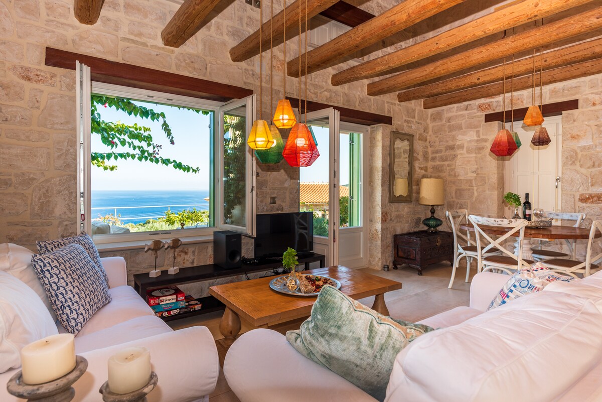 Is árasán neamhspleách é BLUE SEA HOUSE ina bhfuil 2 sheomra leapa, seomra folctha, cistin, seomra suí. Limistéar ollmhór lasmuigh ina bhfuil áit suí, linn snámha phríobháideach eisiach, áit bheárbaiciú chun béile a ithe lasmuigh agus radharc iontach ar an bhfarraige. Páirceáil phríobháideach. Ag 200 méadar ó thrá San Nikolas de shiúl na gcos, ag dul ar chosán salachair. Tá an trá, an calafort, bialanna, mionmhargadh agus beáir 1.5 km ar shiúl sa charr. Imíonn Turais Bhád ón gcalafort chun na Pluaiseanna Gorma agus Trá Shipwreck (Navagio) a fheiceáil chomh maith le báid farantóireachta go Kefalonia.