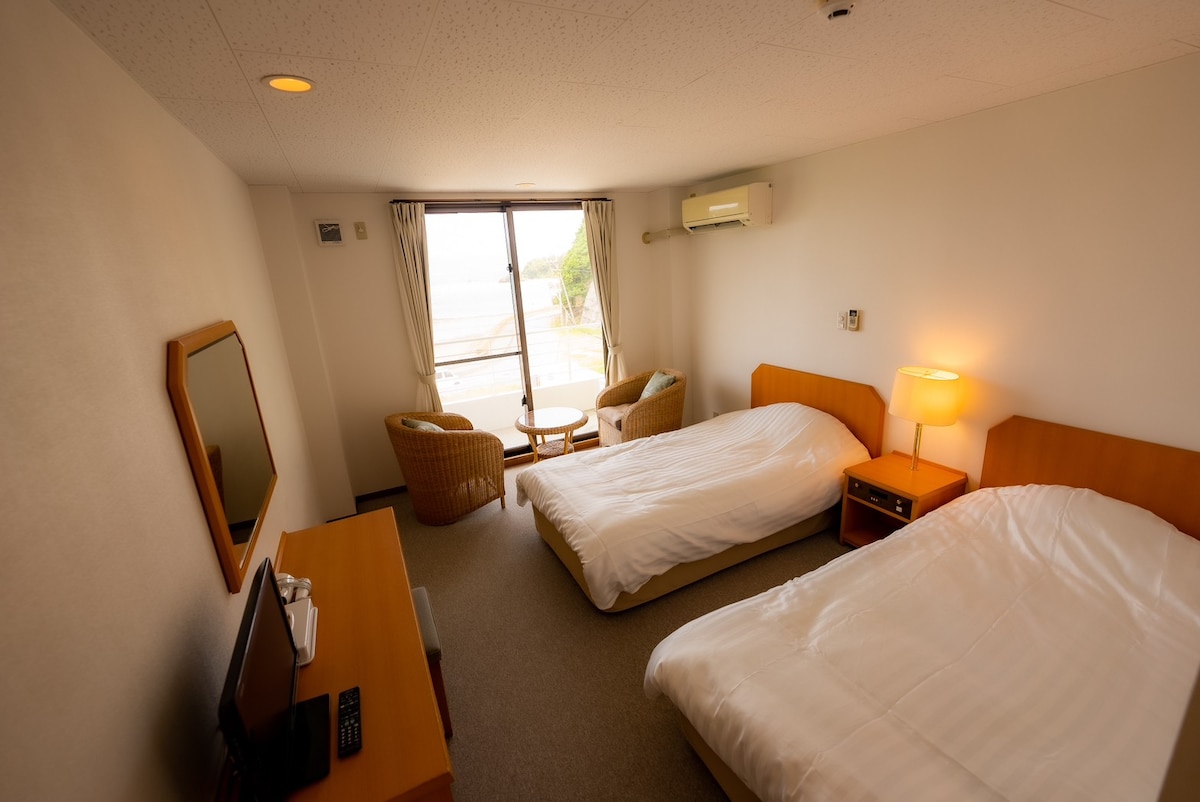 [Deluxe Twin] Fáilte go dtí gach seomra le radharc ar an aigéan!Siúlóid 1 nóiméad chun na farraige [2ú hurlár · Seomra folctha ar fáil]
