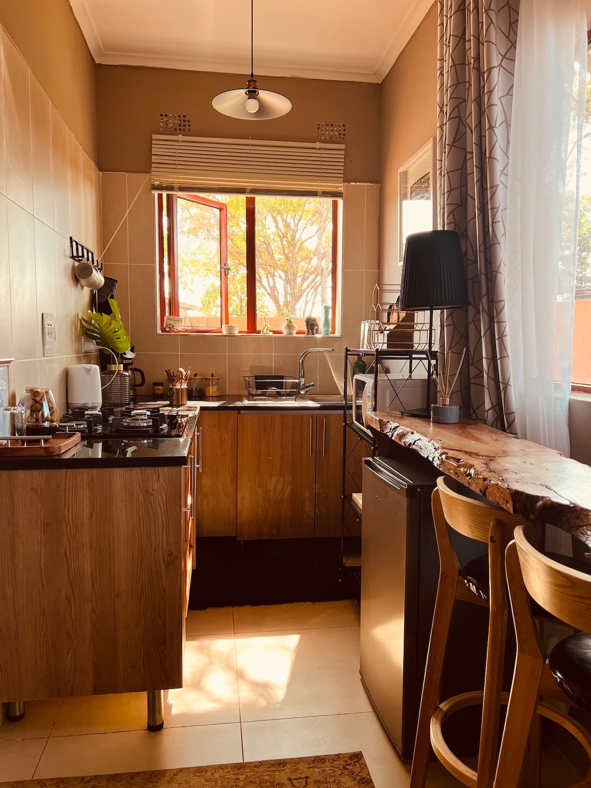 Tá an t - árasán suite in ionad tithíochta feadh bhóthar an Locha i gcnoc Ibex. Tá ollmhargadh Choppies sa chéad cheapach eile, 3 nóiméad ar shiúl. Tá bialanna, ollmhargaí, bainc/ATManna agus siopaí le fáil ag an Ionad Siopadóireachta Crossroads atá thart ar 5-10 nóiméad ar shiúl. Tá áit suí agus itheacháin chluthar san árasán. Tá Micreathonnán, citeal leictreach, gléas caife, aerfhriochtaire, bruithir uibhe, tóstaer aráin, gléas ceapairí, cuisneoir agus gach earra cistine sa chistin. Tá cithfholcadán sa seomra folctha.