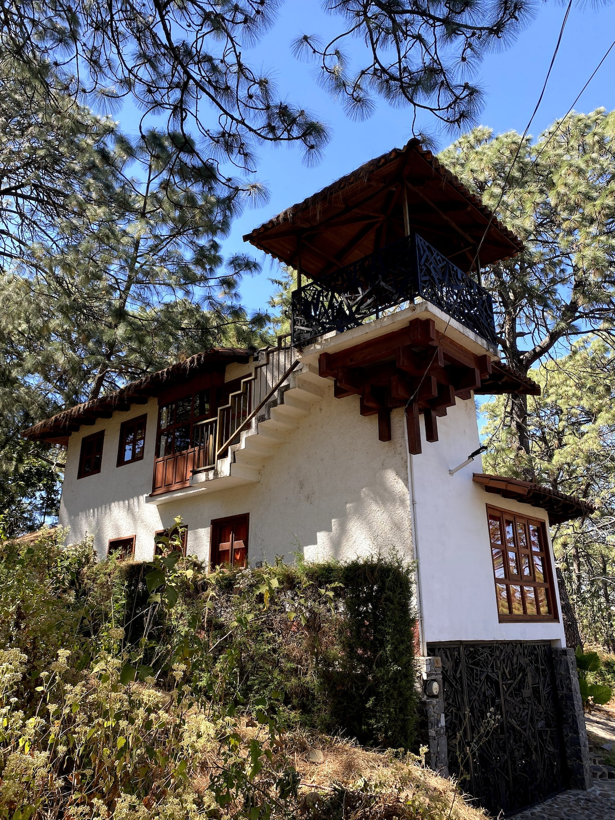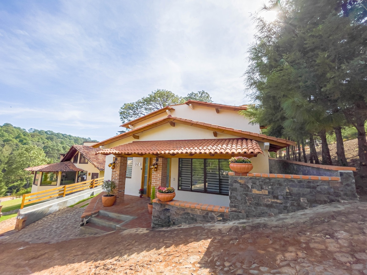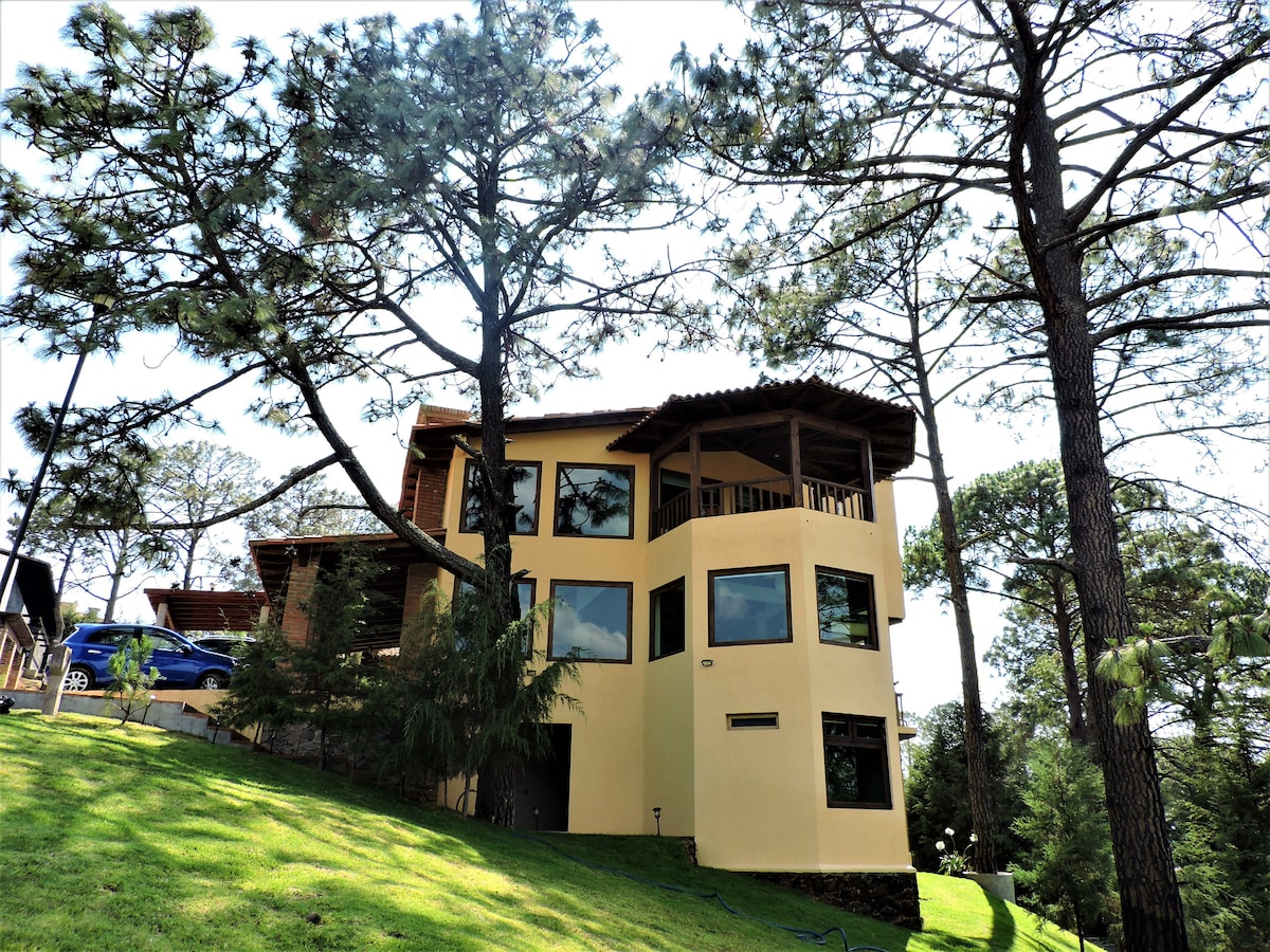 Teachín le maisiú tuathúil atá suite i bhforoinn phríobháideach 5 nóiméad ó lár Mazamitla, oiriúnach chun laethanta ciúine a chaitheamh le teaghlach nó le cairde san fhoraois, radharc álainn i dtreo na sléibhte