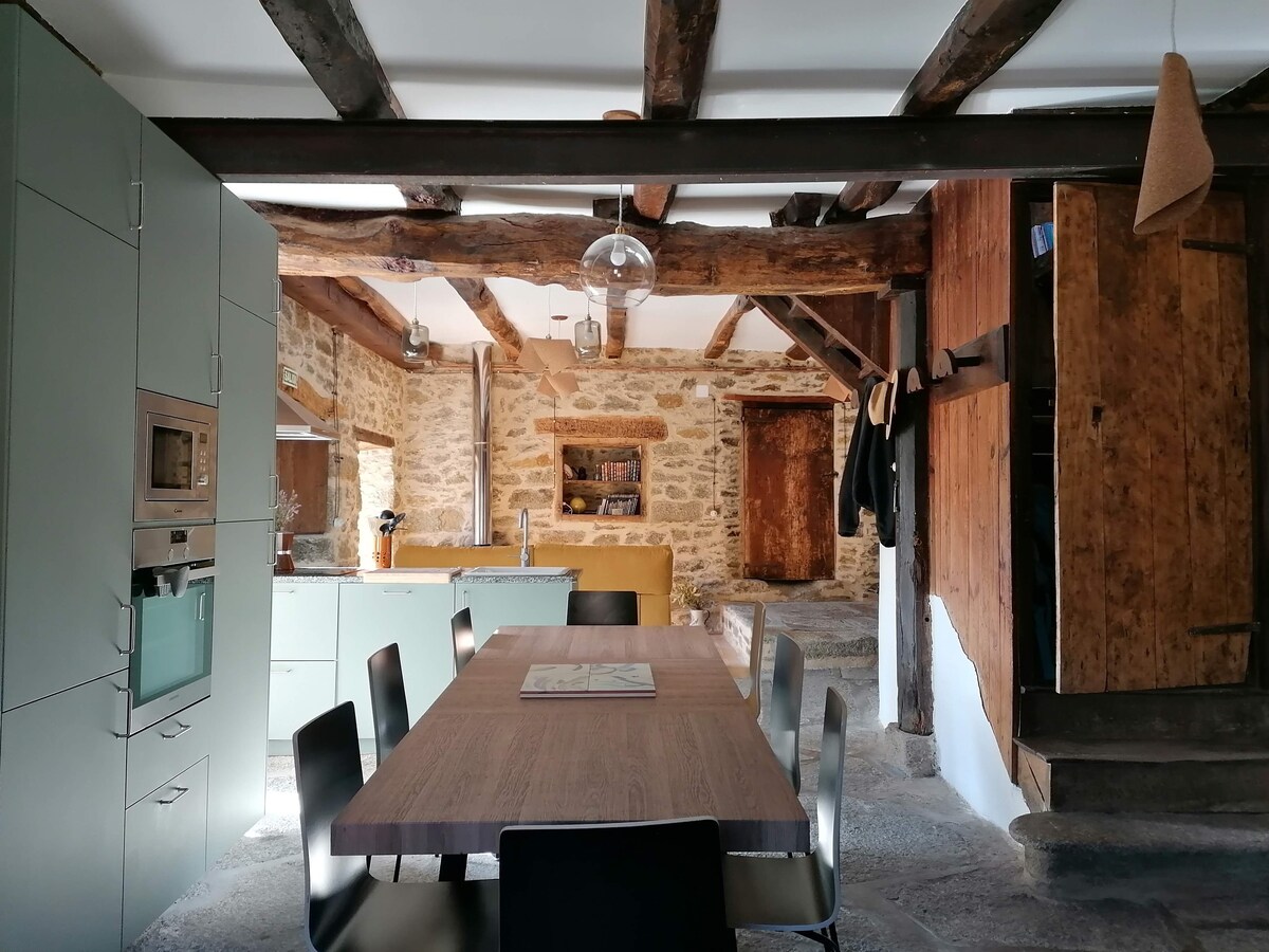 Teach feirme stíl seanré uathúil den scoth sa sráidbhaile is áille den pháirc nádúrtha Arribes del Duero. Seomra suí mór agus paitió mór traidisiúnta le boird, boird, binsí cloiche agus beárbaiciú. Radhairc agus suíomh iontach. Teallaigh millíní a dhónn agus a dhónn adhmad. Feadán le lapaí. Buhardilla Álainn. Wi - Fi saor in aisce agus 55 "Teilifís Chliste. Netflix. Ideal le haghaidh cianobair i dteach agus i dtimpeallacht uathúil. Ceadaítear peataí. Suas le hocht suíochán san iomlán de réir an Junta de Castilla y León. Áiteanna snámha in aice láimhe.
