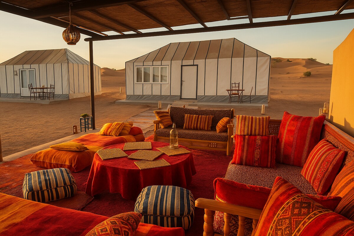 Déan iniúchadh ar áilleacht agus suaimhneas neamhghnách Fhásach an tSahára ag ár dtearmann campa eisiach. Ní hé seo do ghnátháit turasóireachta. Is rún dea - choimeádta é ár gcampa teaghlaigh, áit ar féidir leat tú féin a thumadh i gcultúr saibhir ár muintire Maracach áitiúil. Cuirimid réimse eispéireas uathúil ar fáil, lena n - áirítear ranganna cócaireachta fásaigh, déanamh aráin, ceol traidisiúnta, turais camaill agus go leor eile. Is féidir leat dícheangal ón domhan nua - aimseartha, athcheangal a dhéanamh leis an dúlra, agus glacadh le suaimhneas an tSahára.