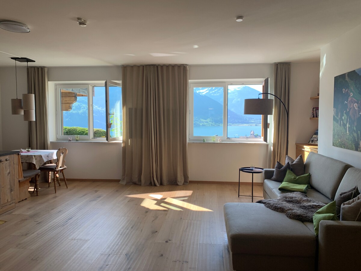 Is árasán fairsing 3 sheomra é, a chuireann spás ar fáil do 4 -5 chara/bhall teaghlaigh. Ceadaítear peataí freisin. Tá leagan amach cruinn an tseomra le fáil sa ghailearaí. Is féidir féinfhreastal a dhéanamh tríd an gcistin, a athchóiríodh in 2019. Toisc go bhfuil an t - árasán go díreach san ionad, tá go leor bialanna agus caiféanna sa tsráid chéanna nó sa cheantar máguaird freisin. Tá radharc agat ar an loch ó 4 sheomra agus ar an mbalcóin. Tá an t - árasán ar an 4ú hurlár - ardaitheoir ar fáil.