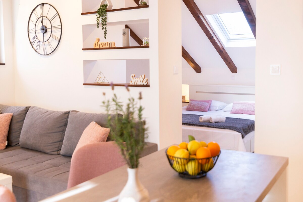 Árasán cois farraige Chic i gcroílár Komiža le radhairc iontacha ar an bhfarraige, díreach céimeanna ón trá. Tá an bhalcóin os comhair na farraige agus tá sí ag breathnú amach ar Chuan gleoite gleoite Komiža. Tit i do chodladh agus múscail fuaim shuaimhneach na dtonnta.