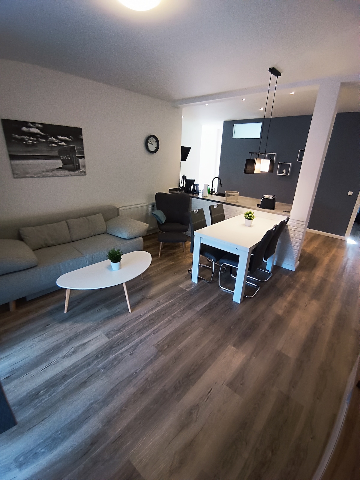 Tá an t - árasán suite i lár Wilhelmshaven, ionas go mbeidh nithe is díol spéise, bialanna agus an príomhstáisiún ina bhfuil stua siopadóireachta in aice láimhe laistigh d'achar siúil. Tá na feistis galánta agus nua - aimseartha agus cinntíonn siad fanacht eisceachtúil leis an áit mhaireachtála oscailte agus cistine. Tá sé suite ar an 2ú urlár, agus is é sin an fáth go bhfuil sé go hálainn geal. Níl aon ardaitheoir sa teach ach spás páirceála príobháideach díreach lasmuigh den doras tosaigh.
