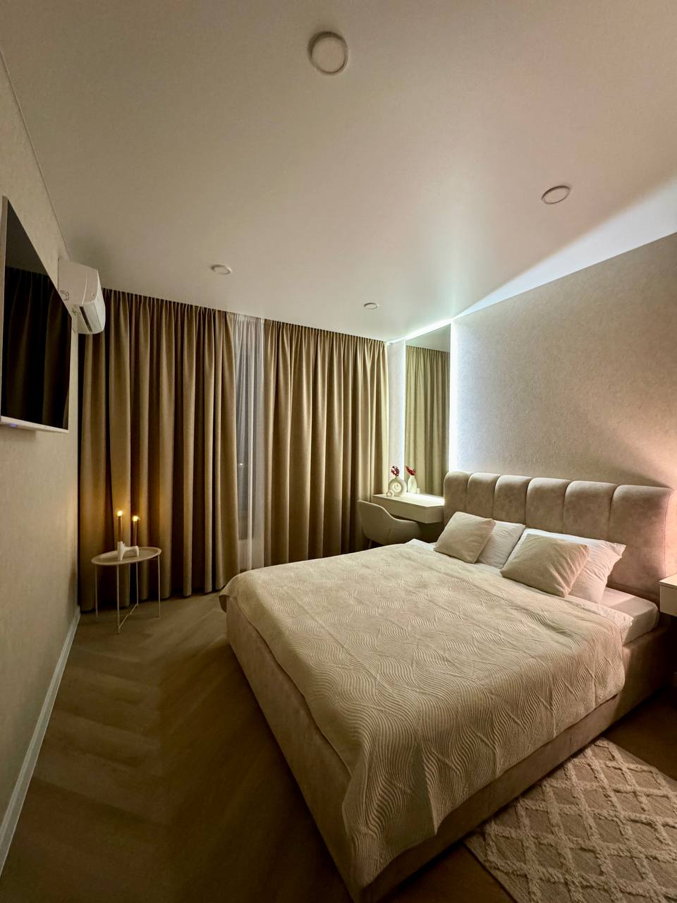 ❤️ Апартаменти в серці міста. 🇺🇦 -20% для військових Що ми вважаємо важливим: → Дизайн натхненний Finn Juhl. Округлі лінії, світлі тони, натуральні матеріали, мʼяке освітлення. → Спокійне розташування → Анатомічний матрац. Кухня з горіху та кам’яною стільницею. Ванна з натурального каменю. → Підігрів підлоги для комфорту та звукопоглинаючі штори для тиші й приватності. → Затишний балкон відкриває вид на атмосферну пішохідну вулицю з кав'ярнями та крамничками.