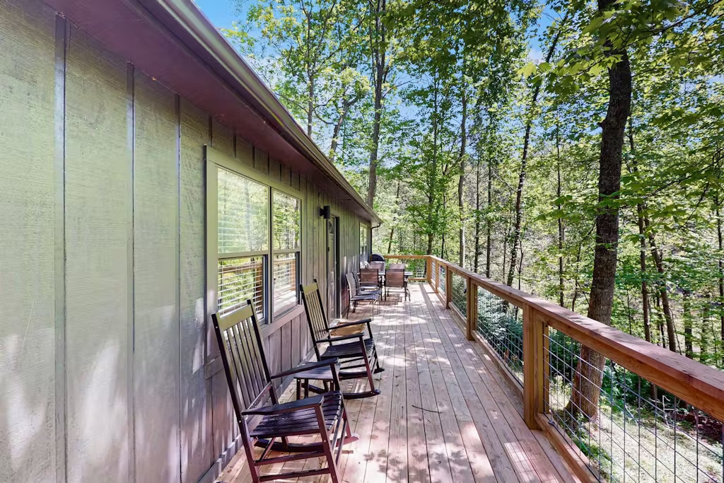 Cábán logála rómánsúil teolaí atá neadaithe sna Smokies! Nuashonraíodh an cábán seo le gach feisteas nua i rith an ama. Tá an cábán suite in aice leis an gCeantar Ealaíon agus Ceardaíochta agus níl sé ach turas gairid ó chuid de na siopaí agus na bialanna áitiúla is fearr. Lig do scíth agus lig do scíth sa tobán te nó bain sult as greadadh ar an bpaitió mór. Beidh tú ag scíth a ligean agus ag baint taitneamh as scoth an dúlra gan mhoill sa chábán tuathúil seo. Tá an cábán feistithe go maith le cistin iomlán chun béilí teaghlaigh a chócaráil. Déan roinnt cuimhní nua anseo!