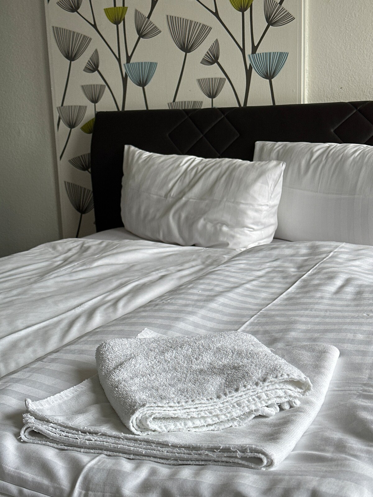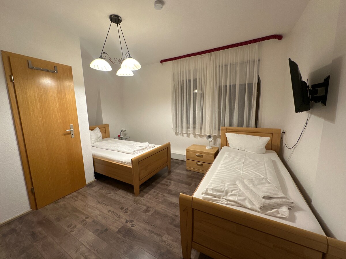 Haus für Monteure in Gäufelden. Das Haus bietet 6 einzelne Zimmer, die alle einzeln gebucht werden können. Jedes Zimmer ist mit 2 Einzelbetten, einem eigenen Bad und eigenem WC ausgestattet. Es gibt 2 voll ausgestattete Gemeinschaftsküchen, Waschmaschinen, Trockner und genug Parkplätze. Ideal für Monteure und Arbeitsteams, die eine komfortable Unterkunft für längere Aufenthalte suchen. Perfekt für Monteure und Teams mit bis zu 12 Personen. LS Crewcomfort - weitere Unterkünfte sind verfügbar