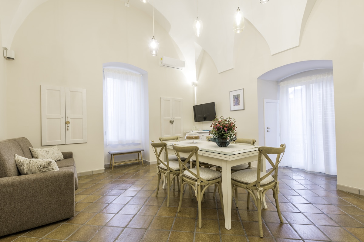 Árasán 2 leibhéal le bailchríocha den scoth, ardán mór le radharc ar cruinneacháin eaglaise in aice láimhe, lena n - áirítear Cruinneachán Lecce. Gan gach torann, ceadaíonn sé síocháin agus scíth a ligean ag gach uair an chloig den lá. Go hiomlán féinchuimsitheach. Trí sheomra folctha, ceann le cithfholcadán dúnta, ceann le cithfholcadán oscailte. Is féidir an tríú seomra folctha ar an ardán a úsáid sa samhradh. Más mian leat an dara seomra leapa a úsáid, fiú má tá beirt agaibh ann, beidh ort formhuirear € 30 in aghaidh an lae a íoc.