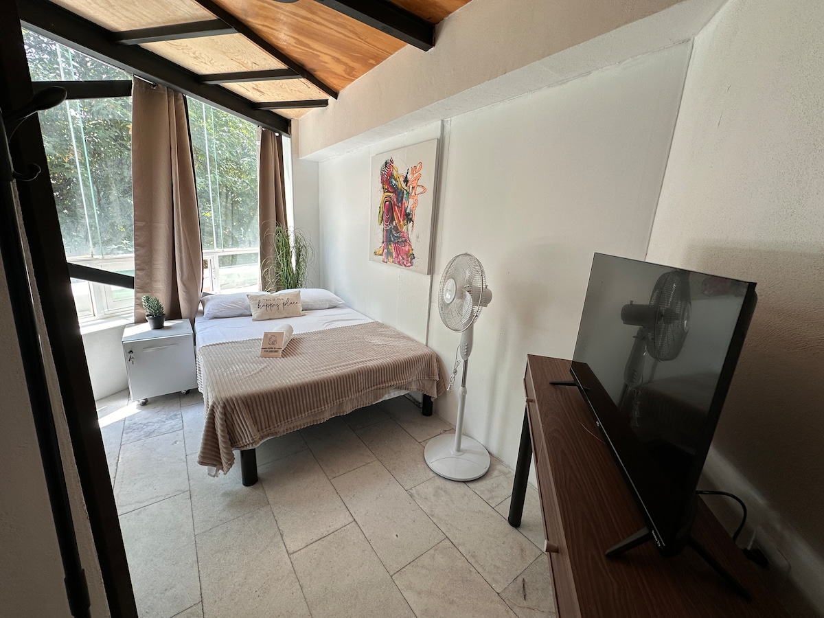 With its prime location near Reforma Avenue and its well-designed interior and terrace, this one-bedroom apartment offers an exceptional living experience in the heart of Mexico City. The living room opens up to the terrace with floor to ceiling windows, allowing residents to enjoy the impressive skyline views of Mexico City while cooling down with the AC /Smart TV see all our listings in xolo stays Must submit to enter the property: - Number of guests - Must sign our internal agreement (
